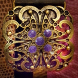This medium large buckle is very comfortable and cute for all occasions. The leather in silver is really wonderful and flexible, if you are a pink lover why not choose our funny croco pink leather. Enamel in purple, turquoise or pink. A belt for a lifetime!