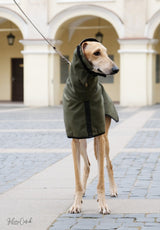 Sighthounds in photos are both quite big and wear;  (Olive green coat 26 inches/66cm.)