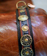 Precious haute couture collar for large or strong breeds with our best luxury leathers in several layers in beautiful contrasting colours. A strong dog collar with many beautiful details lasting a lifetime. In red, blue or brown with bronze or classy black base. This collar is also perfect for giant dog breeds.