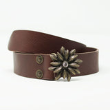 This cute vintage belt is a bit smaller in size and lightweight. In antique gold and with a medium sized crystal in the center. In beautiful melancholic black or luxury warm brown.