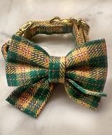 Gorgeous elegant bow dog collar. Perfect for every day or special occasions. The bow is attached with velcro so it can easily be removed if you want to use the collar without it. All bows are unique and with small variations depending on the cut of the fabric.