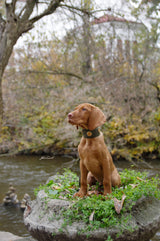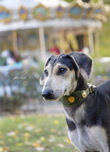 Shanghai Wide dog collar with three high quality gemstones in color and beautiful extra luxury leathers. Perfect for every occasion!