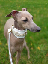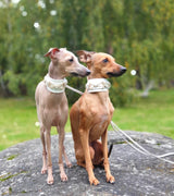 Chic and gorgeous collar in beautiful soft green leathers or white. Double leathers are used!