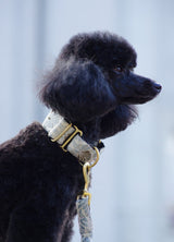 High quality classic luxury fabrics. Brass metal parts and D ring. Perfect for all medium sized dogs.