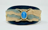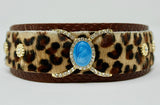 Or brown and leopard leather matching perfectly the blue crystallized centerpiece.