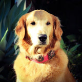 Our beautiful wider Flower Power dog collar for breeds from M to XXL double size is resistant and cool. The metal part is very resistant and slightly curved to follow the dogs neck. A very comfortable dog collar that ages with beauty. Many color options.