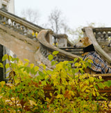 Varmt klassiskt tartan-tyg på utsidan. Lång hals!
