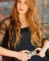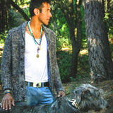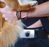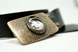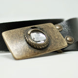 Our Dragon belt is a cool belt for both men and women. We love it in black leather with the large white Blue Nile crystal in the center. Also possible to choose in silver colored metal and with a black compressed glass centerpiece.