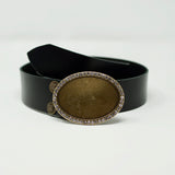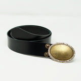 One of our bestsellers. Our Simplicity belt with black flexible leather or silver leather with white crystallized buckle. Wonderful for any occasion. Perfect for jeans, elegant pants or riding pants.