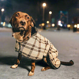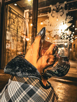 Elegant urban black and white tartan all breed coat. Extra warm high quality soft black faux fur on the inside.