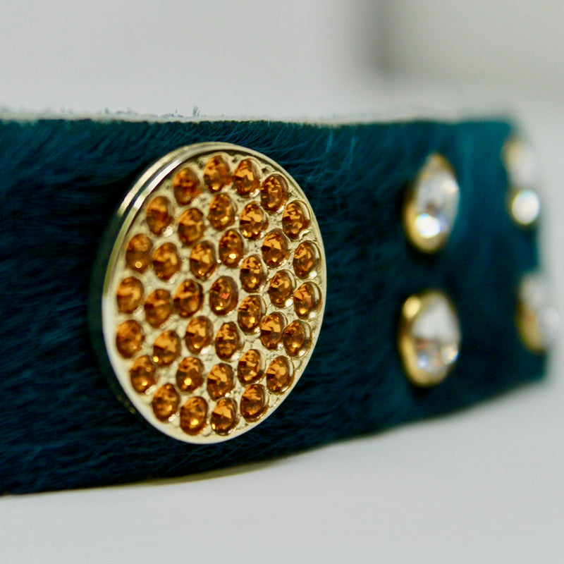 Extra soft leathers are used for comfort and security. In the middle a large ambar crystal is decorating this amazing luxurious pet collar.
