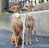 @Theiggypack (white collar picture) are wearing our XS (double leathers ) and XXS (double leathers) size in white.