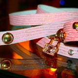 Cascade pet collar for dogs and cats is one of our most popular small dog collars for crystal lovers. It’s available in beautiful sparkling leathers that are extra soft on the inside, with sophisticated soft patterned croco.