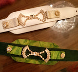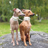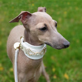 Chic and gorgeous collar in beautiful soft green leathers or white. Double leathers are used!