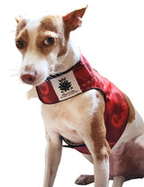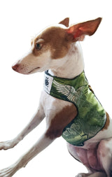 The harness is adjustable in the front and around the chest. (Long straps for easy fit.)