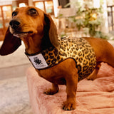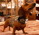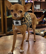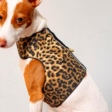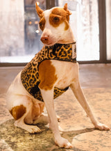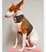 The Podenco (6 kilo, 13,2 ibs), is wearing the S size in leopard.