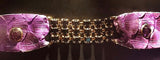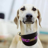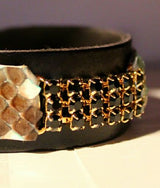 Black swan is an elegant and exclusive haute couture pet collar for small to medium dogs Black leather and on top beautiful real hand dyed python in purple or turquoise. Swarovski's in matching colors and black fancy cristal straps, and the best part is that it is not as delicate as it might seem. It comes with a matching bracelet available at the Accessories for her.