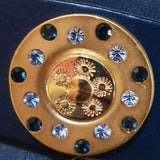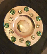 In the center it has beautiful Swarovski crystal in a deep setting. This makes it hard for the crystals to fall off.