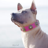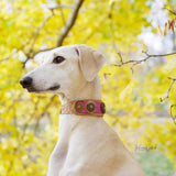 This dog collar is decorated with many wonderful antique gold coins. This is a very resistant collar that ages with beauty.