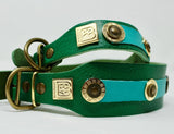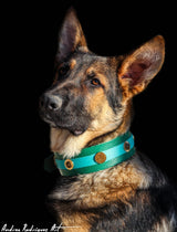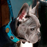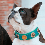 Mixture of coins in gold and antique gold are decorating this special dog collar.