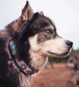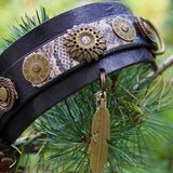 Sioux One Feather dog collar is a unique dog collar with beautiful Native American details. 100% patterned strong leathers with dark brass metals.