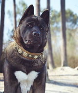 Dog collar for extra large dogs Star is a real treasure for larger dogs. Exclusive thick resistant leather combinations in two colours and decorated with the nice Star crystal! If you prefer another color than the suggested please add it in the message at check out. Dog collar Star Fish is so beautiful with thick quality leathers and metals that last for a lifetime and the beautiful crystal in the center, ages with beauty.