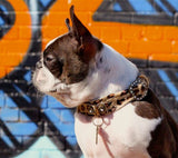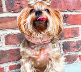 Karen Blixen dog collar is a very cute or savage soft pet collar. It´s made with beautiful luxurious leathers with a large crystallized centerpiece.