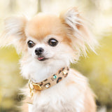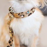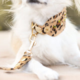 This beautiful leopard printed dog collar is very soft and comfortable.