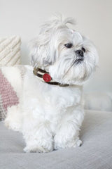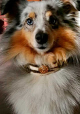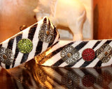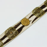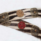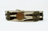 Very elegant and exclusive collar in one of a kind thick cowhide, patterned in beautiful beige/ black zebra. This is a very exclusive Zanzibar collection dog collar for medium and large breeds. Beautiful Preciosa bohemian luxury crystals in the center and curious filigree decor on the sides.